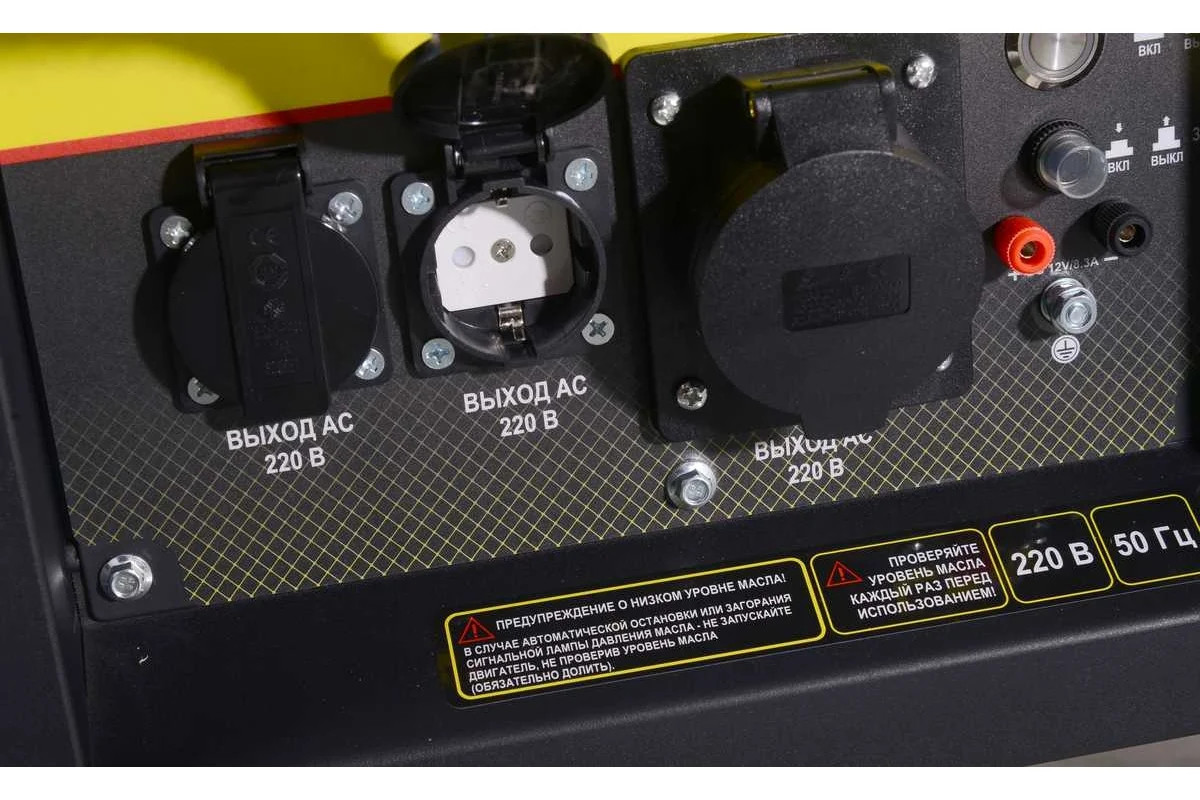 • Две розетки, 220В/16А и 400В/32А, выход питания постоянного тока 12 В и клемма заземления