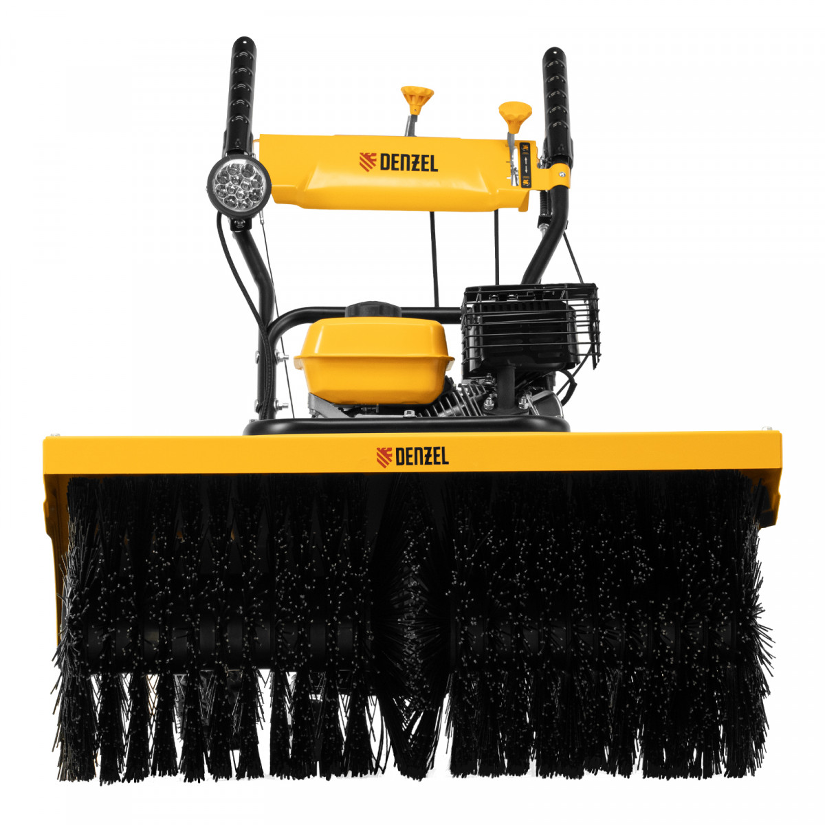 Гибридная снегоуборочная машина Denzel SWB-800 97662 с двигателем объемом 212 см3, ручным стартером и 2 насадками, предназначена для очистки территории от снега, а также может использоваться для уборки листвы, грязи, пыли и мусора. Благодаря приводу на колеса машину не нужно толкать. Ширина обработки щеткой составляет 800 мм, ширина снегоуборочной насадки — 560 мм при высоте захвата 430 мм. Машина позволяет быстро расчистить дорожки, тротуары, территорию парковки и т.д.