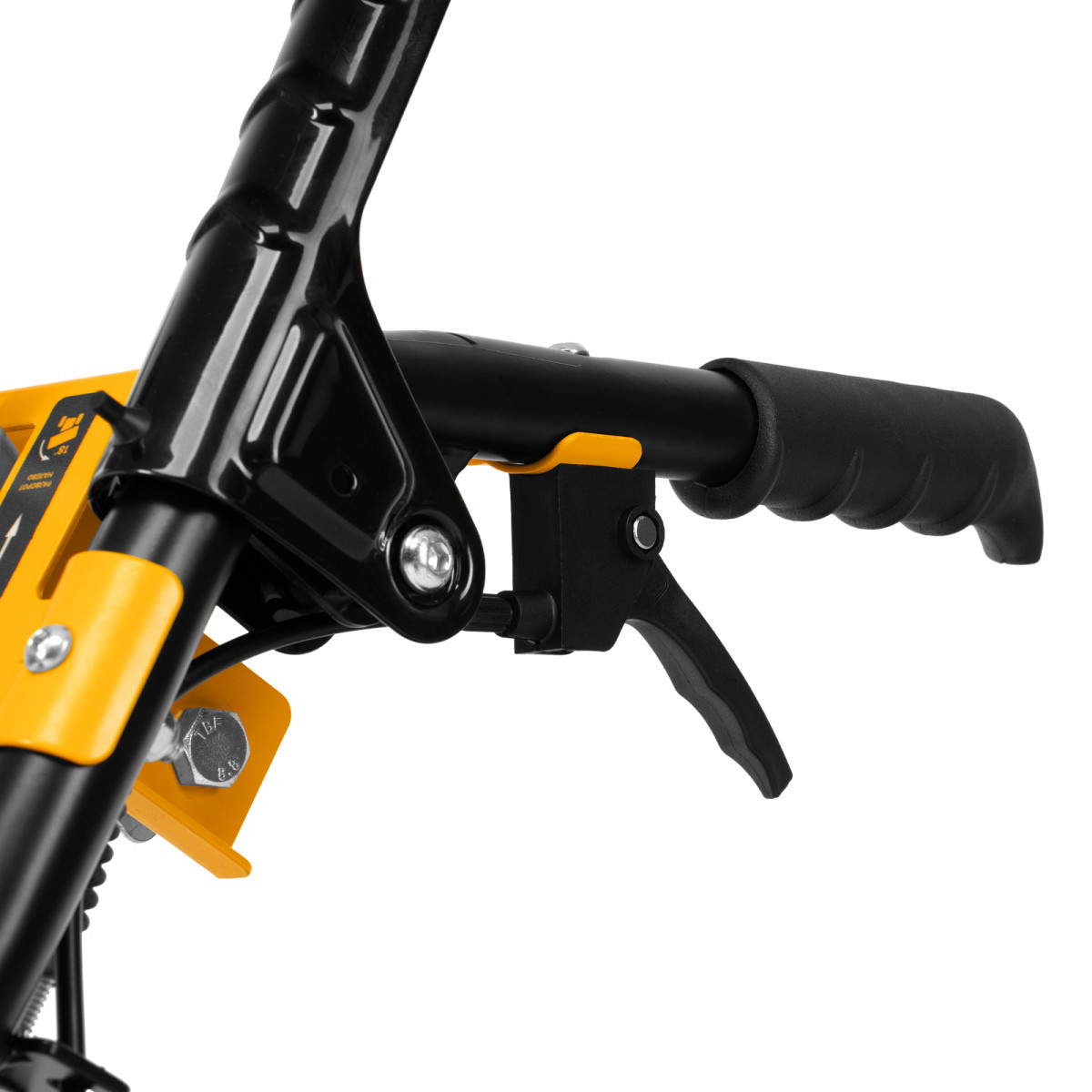 - Эргономичность — для регулировки положения разгрузочного желоба и подметальной насадки не нужно наклоняться.