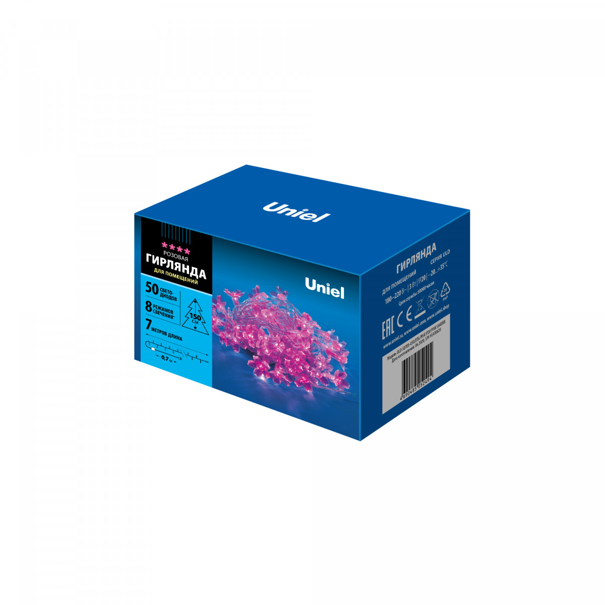 Гирлянда с контроллером 7м 50 светодиодов Сакура розовая IP20 провод прозрачный Uniel