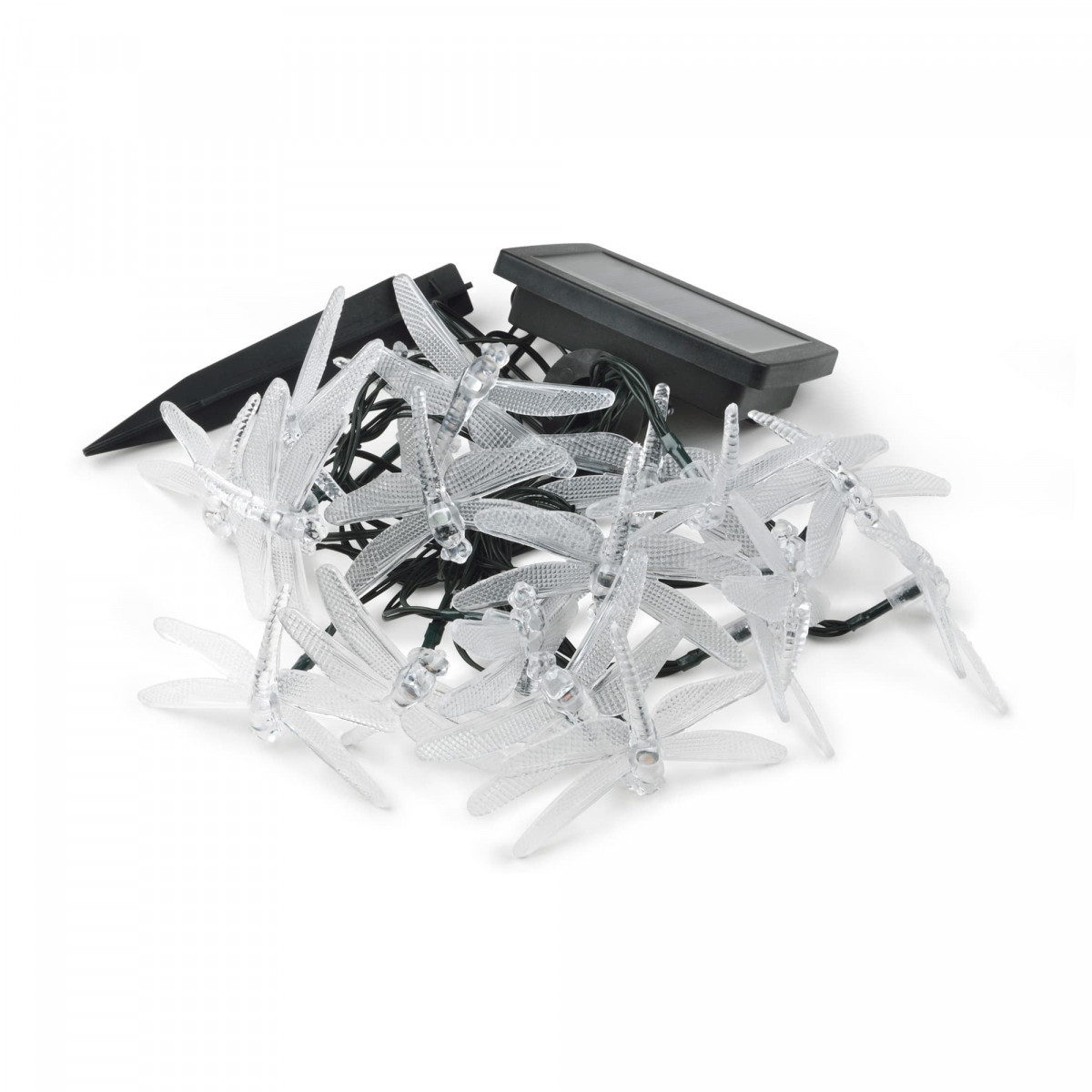 Гирлянда садовая на солнечной батарее 2 м с насадкой Стрекозы темная нить 400 мАч LED 20 мультицвет