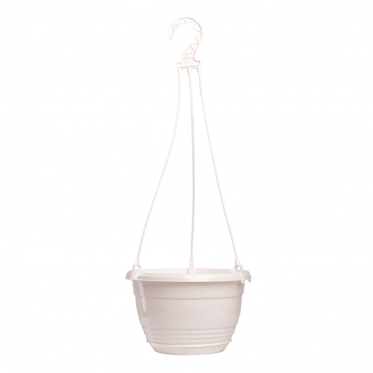 Горшок с поддоном предназначен для пересадки и выращивания декоративных культур небольшого и среднего размера. Изделие обладает эстетичным внешним видом, благодаря чему отлично впишется в интерьер помещения. Специальное крепление позволяет удобно размещать горшок в подвешенном состоянии. Поддон, входящий в комплект, собирает излишки жидкости при поливе растения.