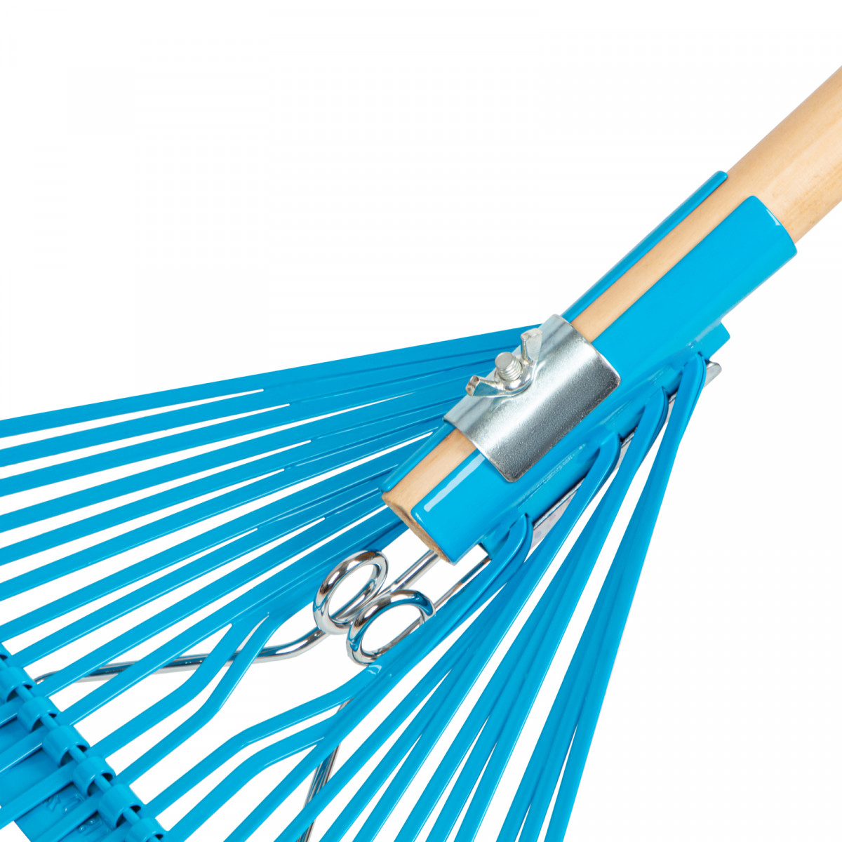 - Прочность и долговечность — грабли изготовлены из рессорно-пружинной стали и покрыты порошковой эмалью для защиты от коррозии.