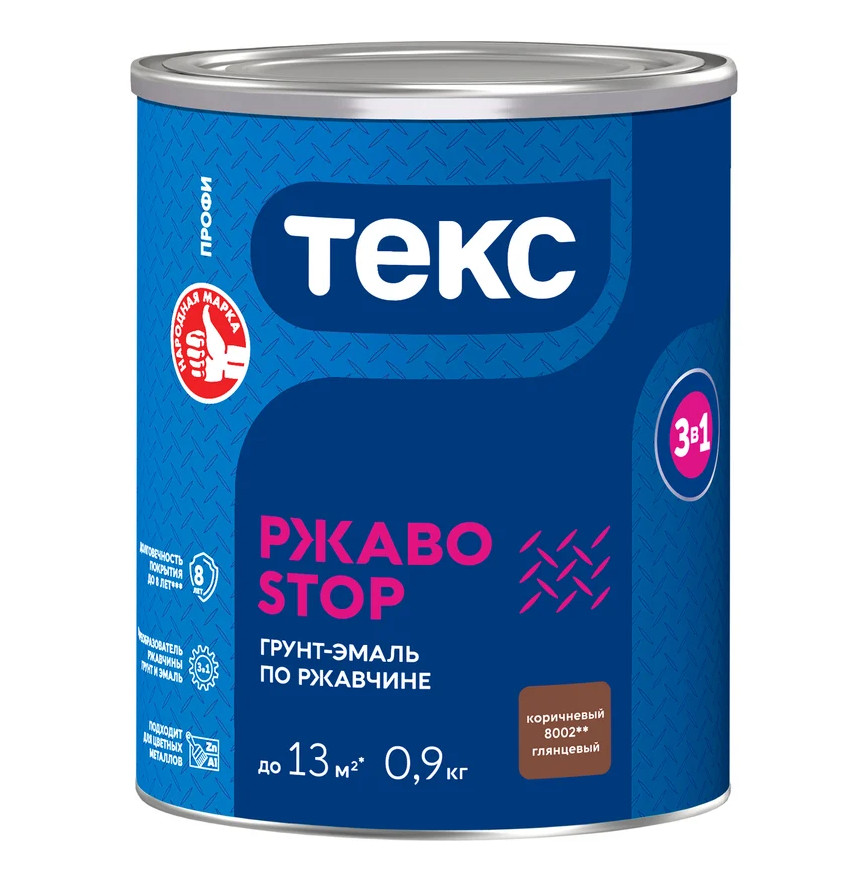 Грунт-эмаль 3в1 РЖАВОSTOP ПРОФИ коричневая глянцевая 0,9кг ТЕКС