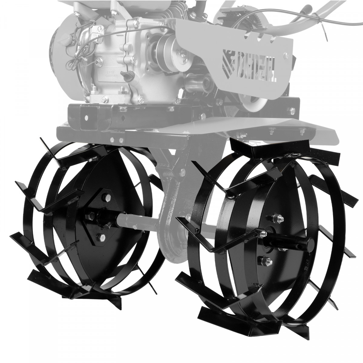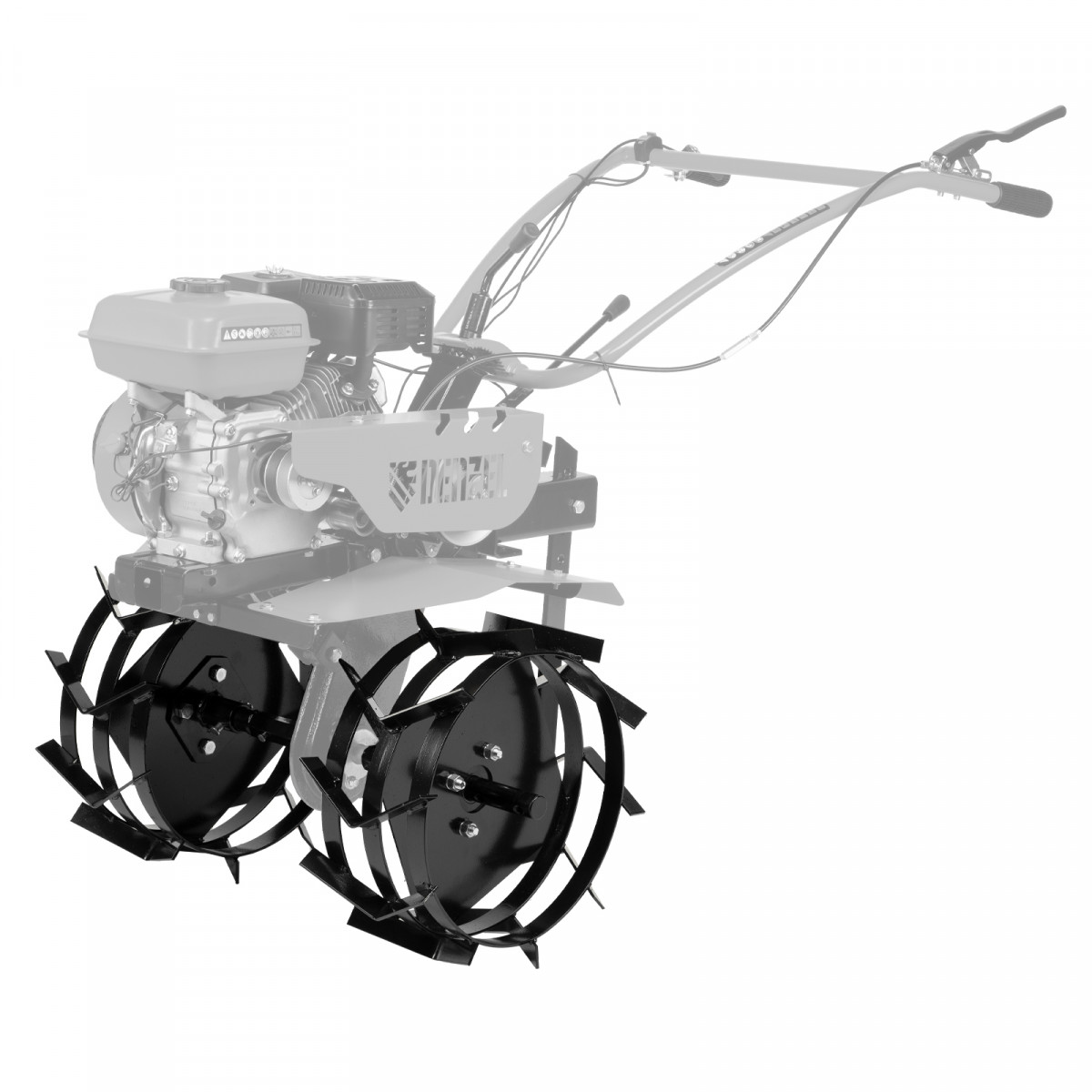 Грунтозацепы Denzel 59916 диаметром 425 мм и шириной 200 мм, с посадочным кругом 30 мм, 2 шт. в комплекте, устанавливаются на мотоблок и облегчают выполнение тяжелых работ: окучивание, вспахивание, рыхление. Обеспечивают хорошее сцепление с почвой, устойчивость на рыхлом грунте, а также улучшают проходимость. Изделия используются для ухода за дачным участком и проведения сельскохозяйственных работ.