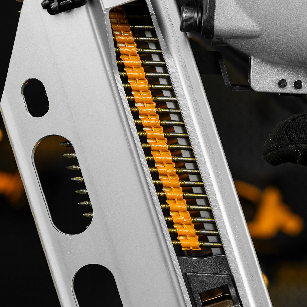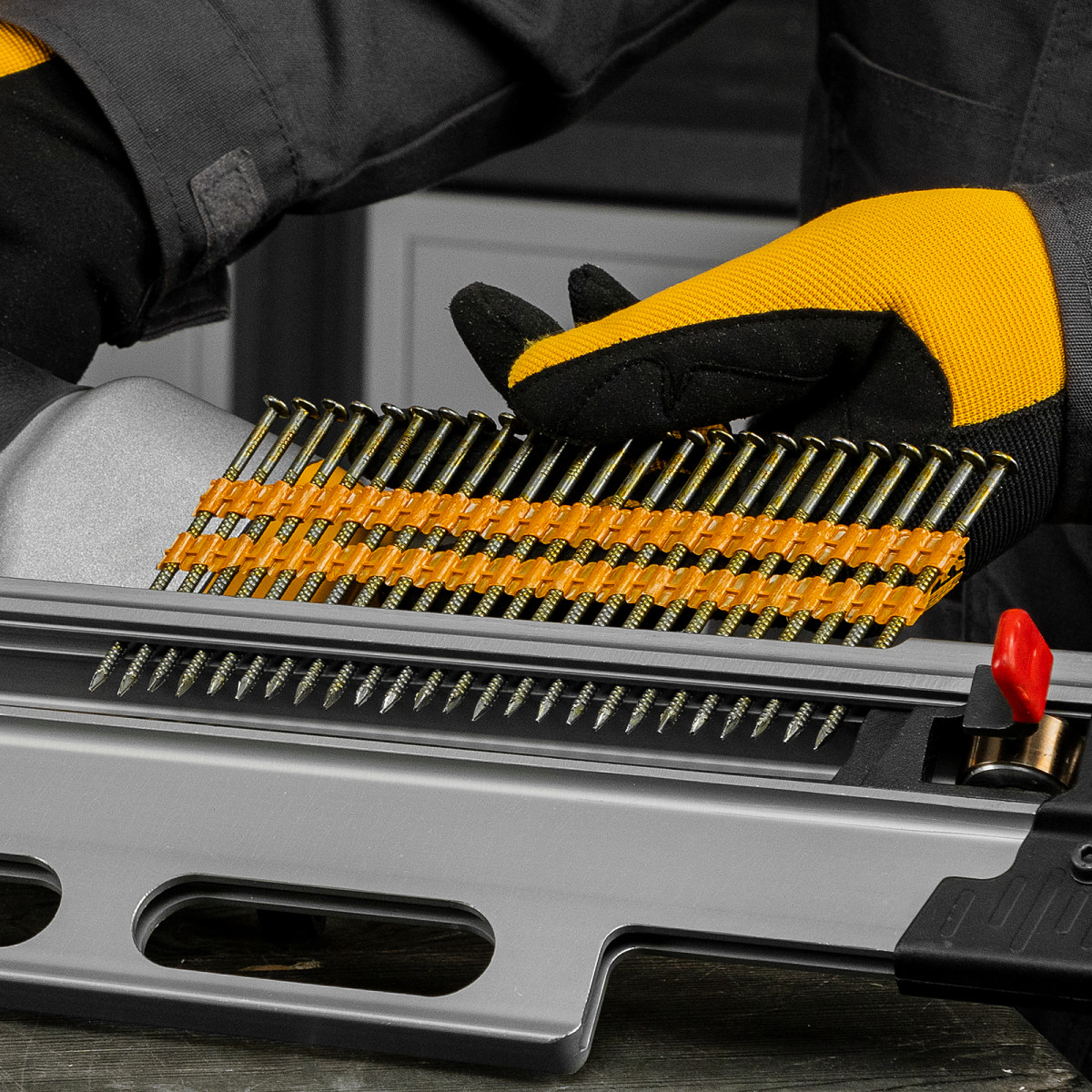 Гвозди Denzel 57697 типа SN21, длиной 75 мм и диаметром 3,05 мм, с крашеной поверхностью, 2000 шт. в упаковке, — расходники для пневматического нейлера. Используются для скрепления различных материалов, будут полезны во время сборочных и отделочных работ.
