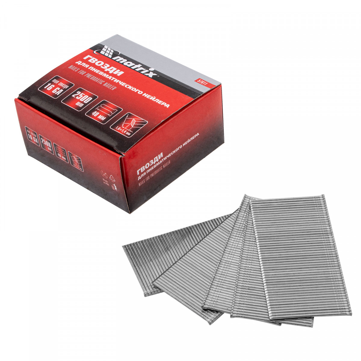 Гвозди для пневматического нейлера 16GA, сечение 1.6 х 1.4, длина 40 мм, 2500 шт Matrix