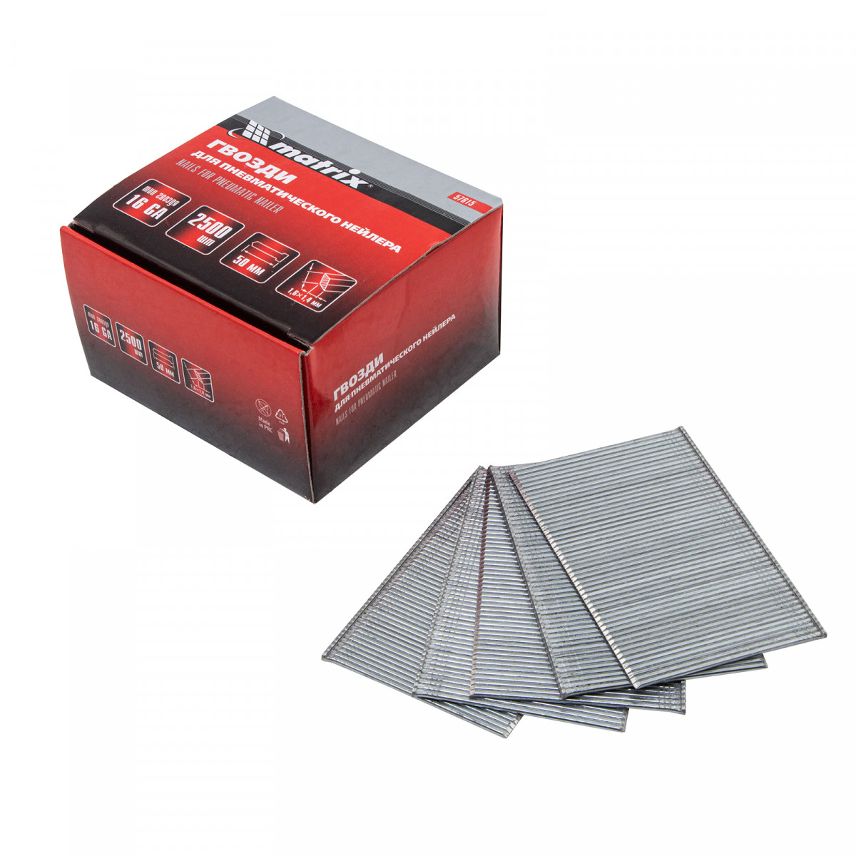 Гвозди для пневматического нейлера 16GA, сечение 1.6 х 1.4, длина 50 мм, 2500 шт Matrix