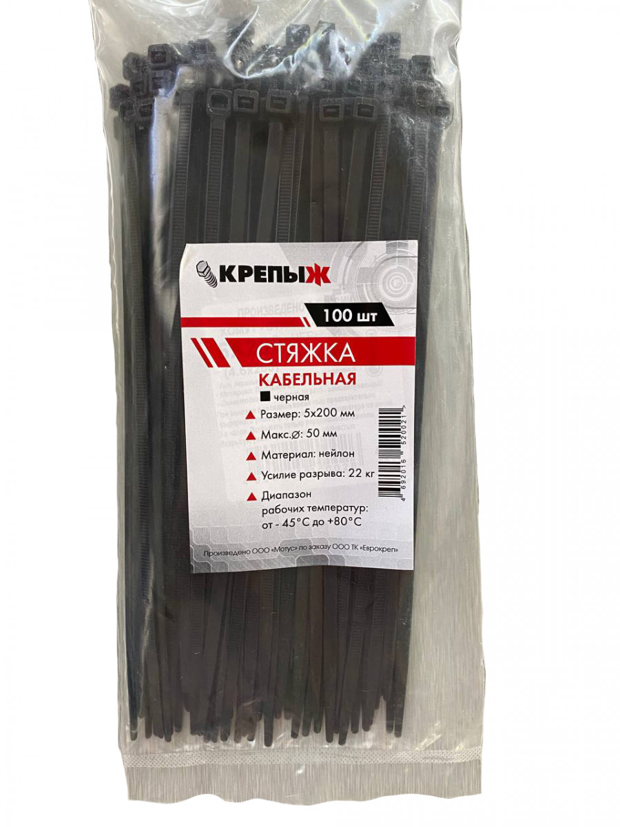 Хомут нейлоновый 5*200 мм черный КРЕПЫЖ (100шт)
