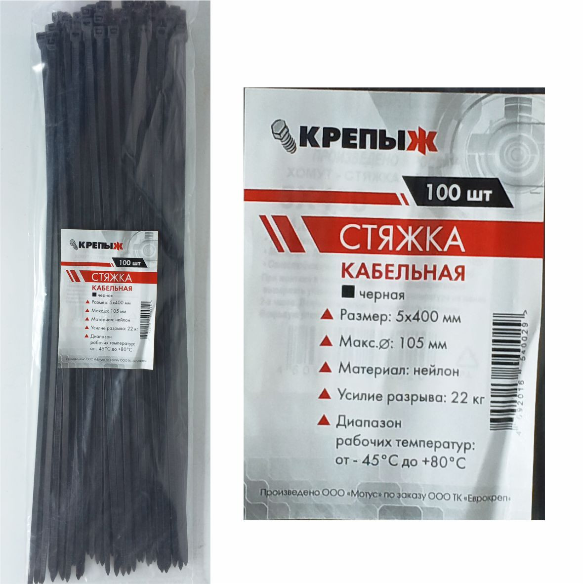 Хомут нейлоновый 5*400 мм черный КРЕПЫЖ