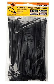 Хомут пластиковый 3.6Х200 черный Энкор (100 шт)