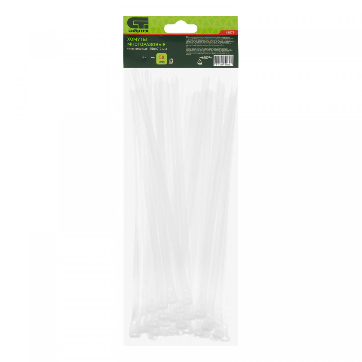 Хомуты многоразовые 250 x 7.2 мм, пластиковые 50 шт Сибртех