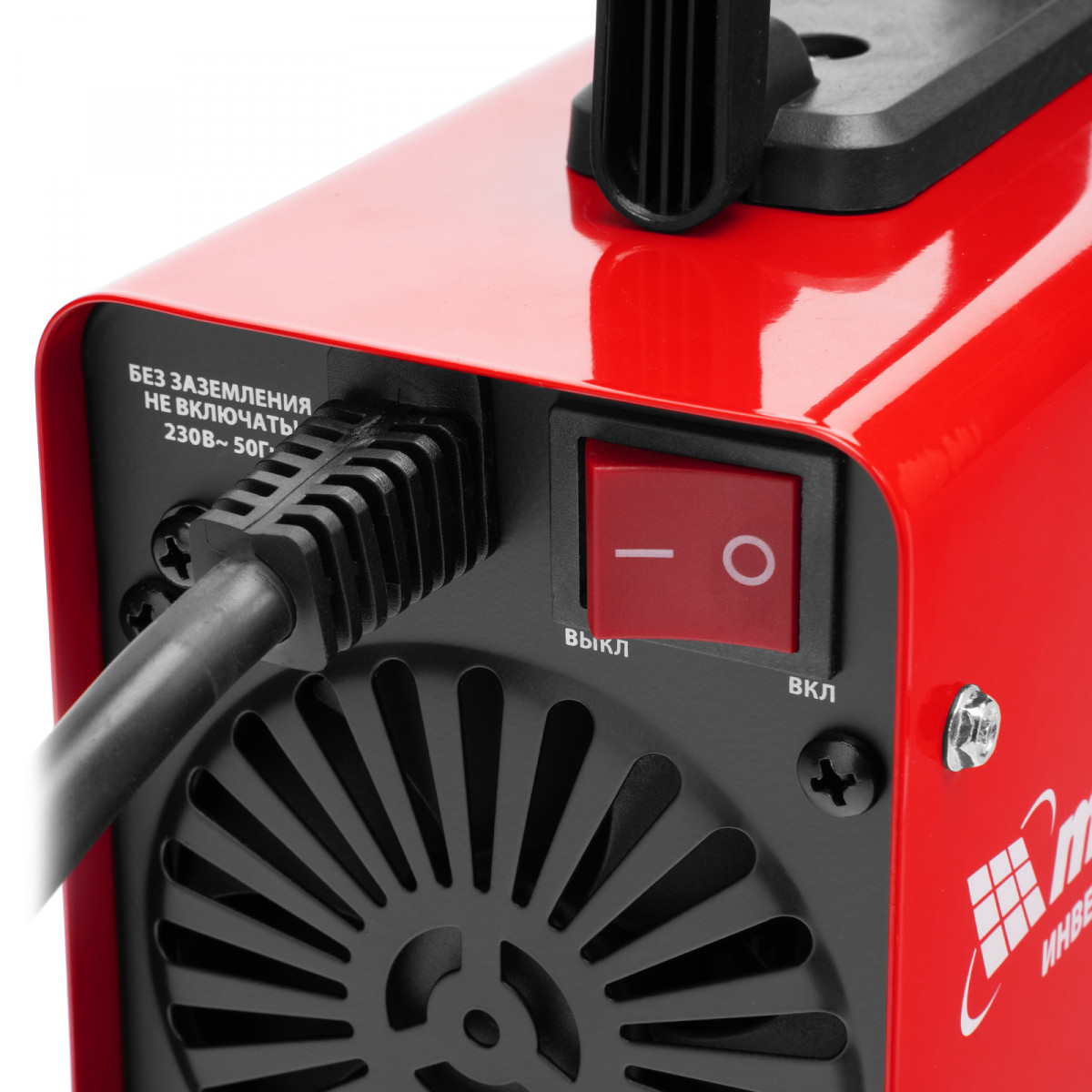 - Удобная настройка — величина сварочного тока устанавливается при помощи поворотного регулятора.