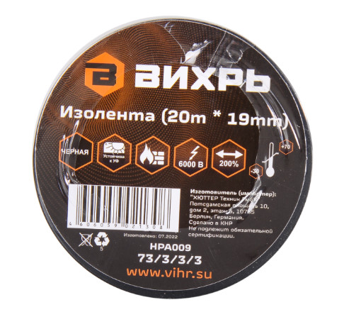 Выдерживает напряжение пробоя - 6000 В. Обладает высокими клеевыми свойствами. Эластичная и прочная, удлинение при разрыве – от 170 до 200% Устойчива к ультрафиолетовым лучам. Не поддерживает горение. Диапазон рабочих температур от -30 до +70