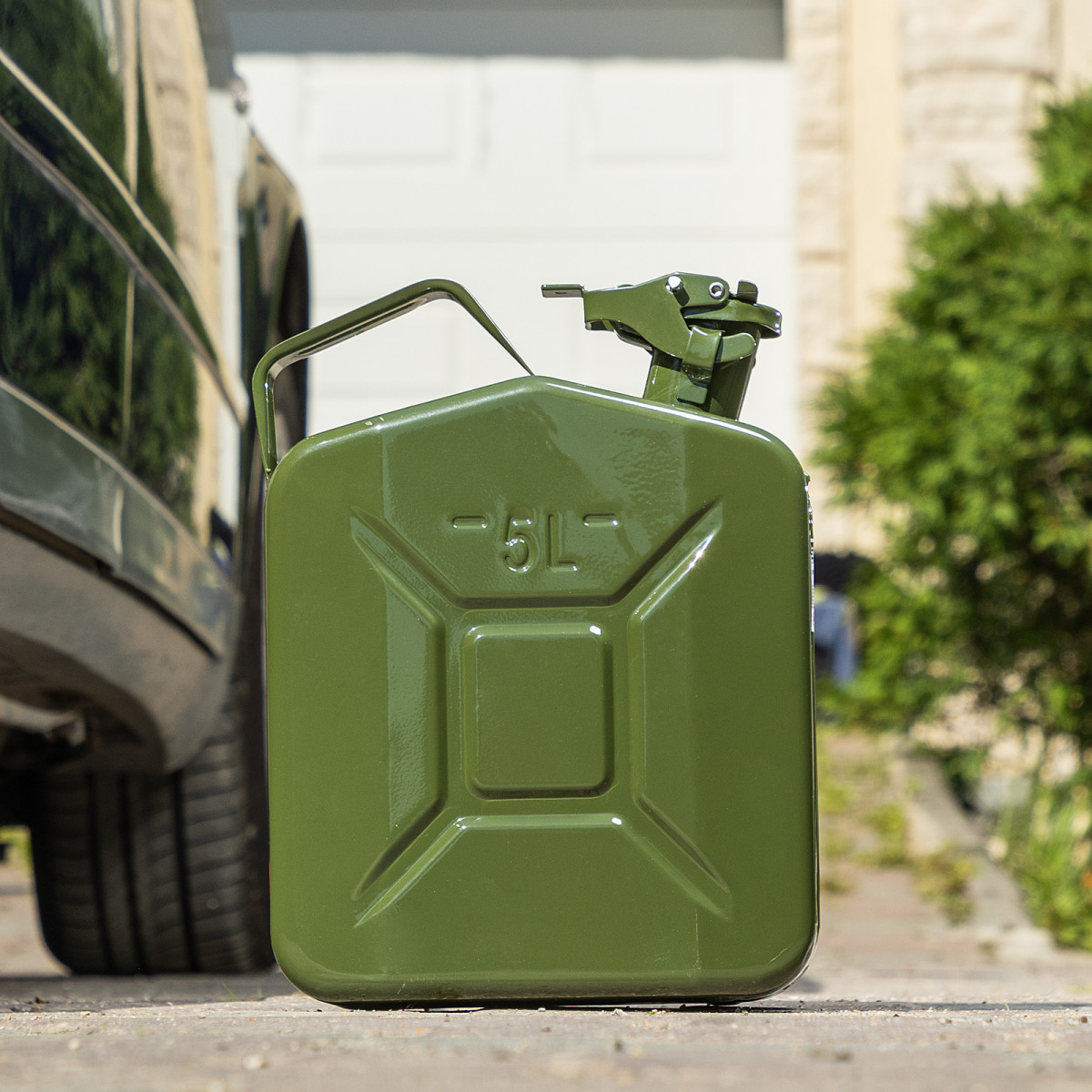 Металлическая канистра STELS 53143 объемом 5 литров предназначена для хранения и транспортировки бензина и других горюче-смазочных материалов (ГСМ). Ее можно разместить в багажнике автомобиля или поставить в гараже. Канистра пригодится для заправки авто и садовой бензотехники, разрешен залив топлива на АЗС.