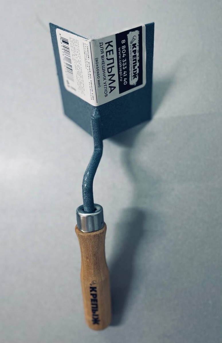 Кельма для внешних углов, 80*60*60 окрашенная сталь, дерев.ручка КРЕПЫЖ