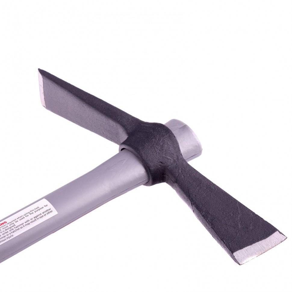 Сталь рабочей части кирки закалена до твердости 48-52 HRC, обеспечивая высокую прочность и устойчивость к ударным нагрузкам.