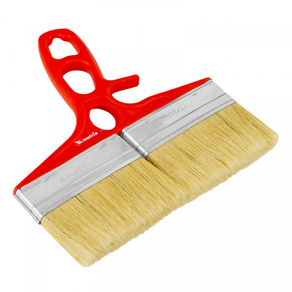 Флейцевая кисть для лаков Color Line Matrix 83369 шириной 200 мм и толщиной 12 мм, с натуральной щетиной и пластиковой ручкой, используется при отделке поверхностей лаковыми составами. Увеличенные размеры быстро обрабатывать участки большой площади. Натуральная светлая щетина расщеплена на концах, поэтому хорошо поглощает и отдает ЛКМ.