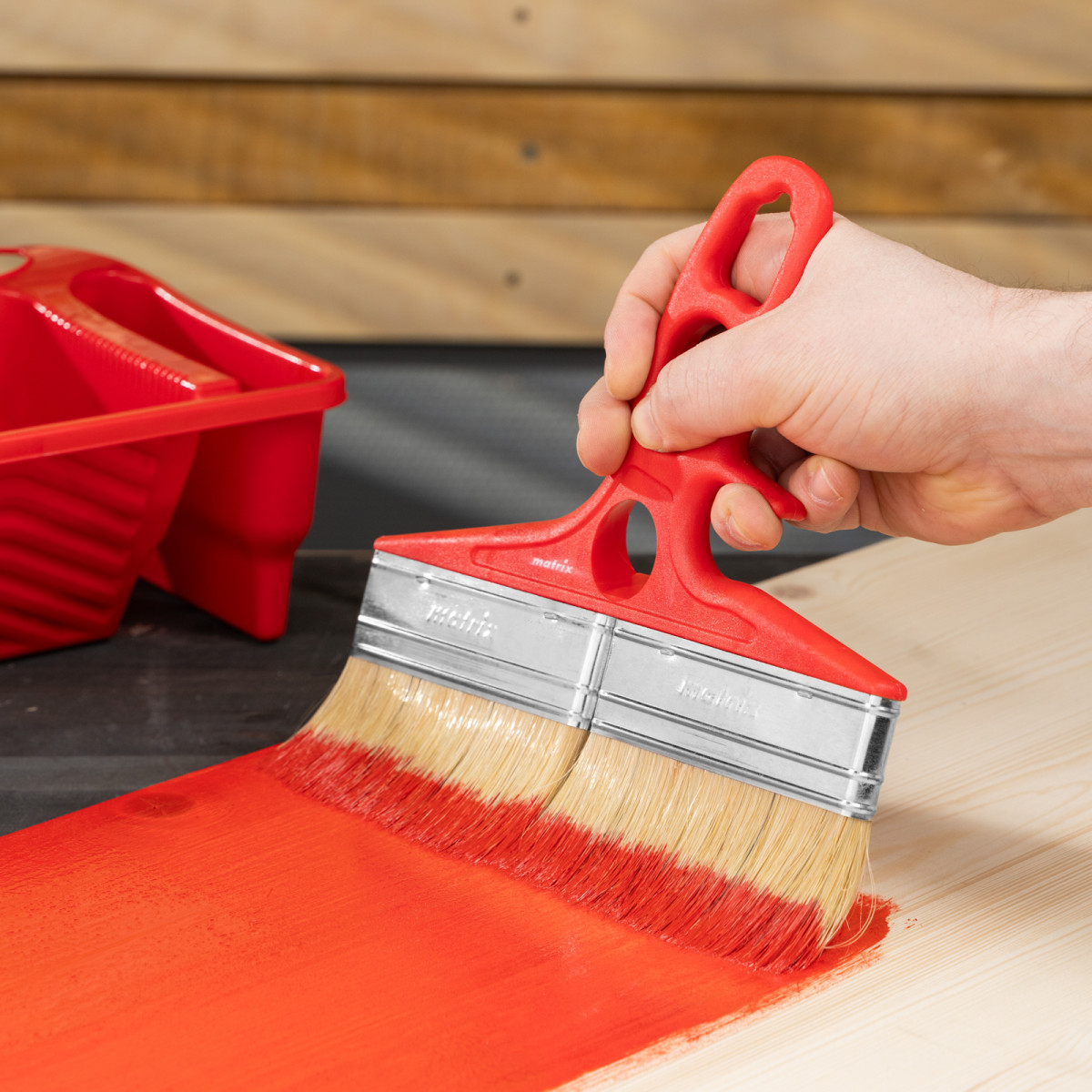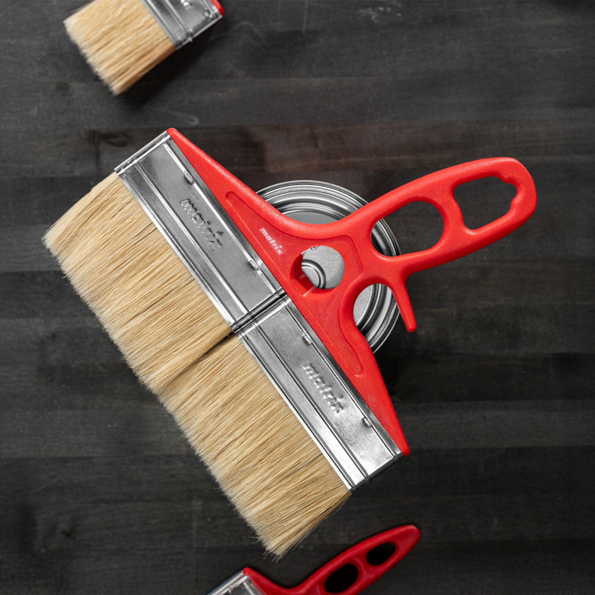 - Продуманная форма рукоятки — благодаря специальной выемке кисть можно закрепить на банке, ведре или ванночке.