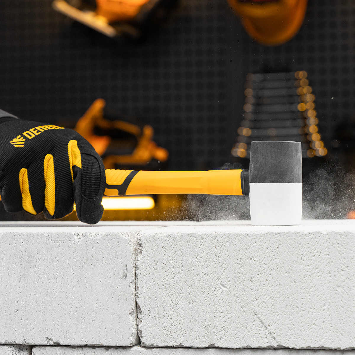 Киянка резиновая, 225 г, черно-белая, фибергласовая рукоятка c TPR покрытием Denzel