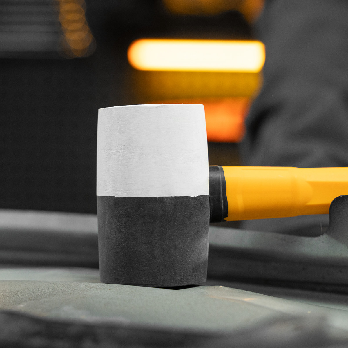 - Безопасная работа со светлыми материалами — часть бойка из белой резины не оставляет следов.