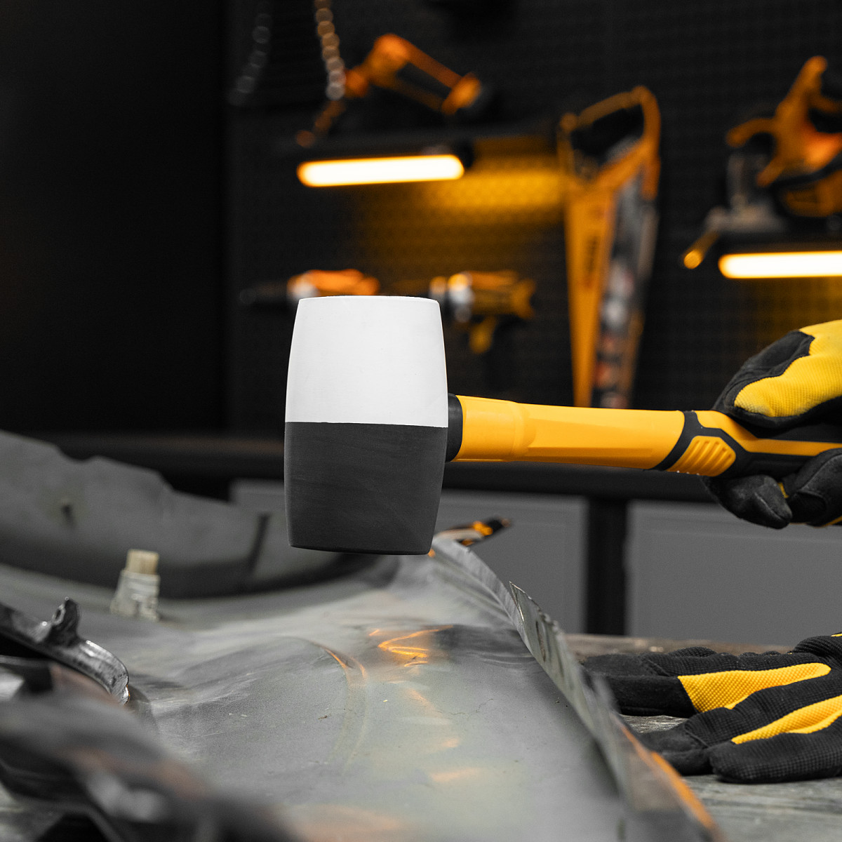Резиновая киянка Denzel 11103 с бойком из черно-белой резины весом 680 г и фибергласовой рукояткой с TPR-покрытием, применяется во время монтажных, сборочных и кузовных работ, укладки плитки. Резиновый боек с высокими амортизирующими свойствами оптимален для работы с чувствительными к давлению материалами. Инструмент характеризуется высокой прочностью и стойкостью к агрессивному воздействию, подходит для профессионального использования.