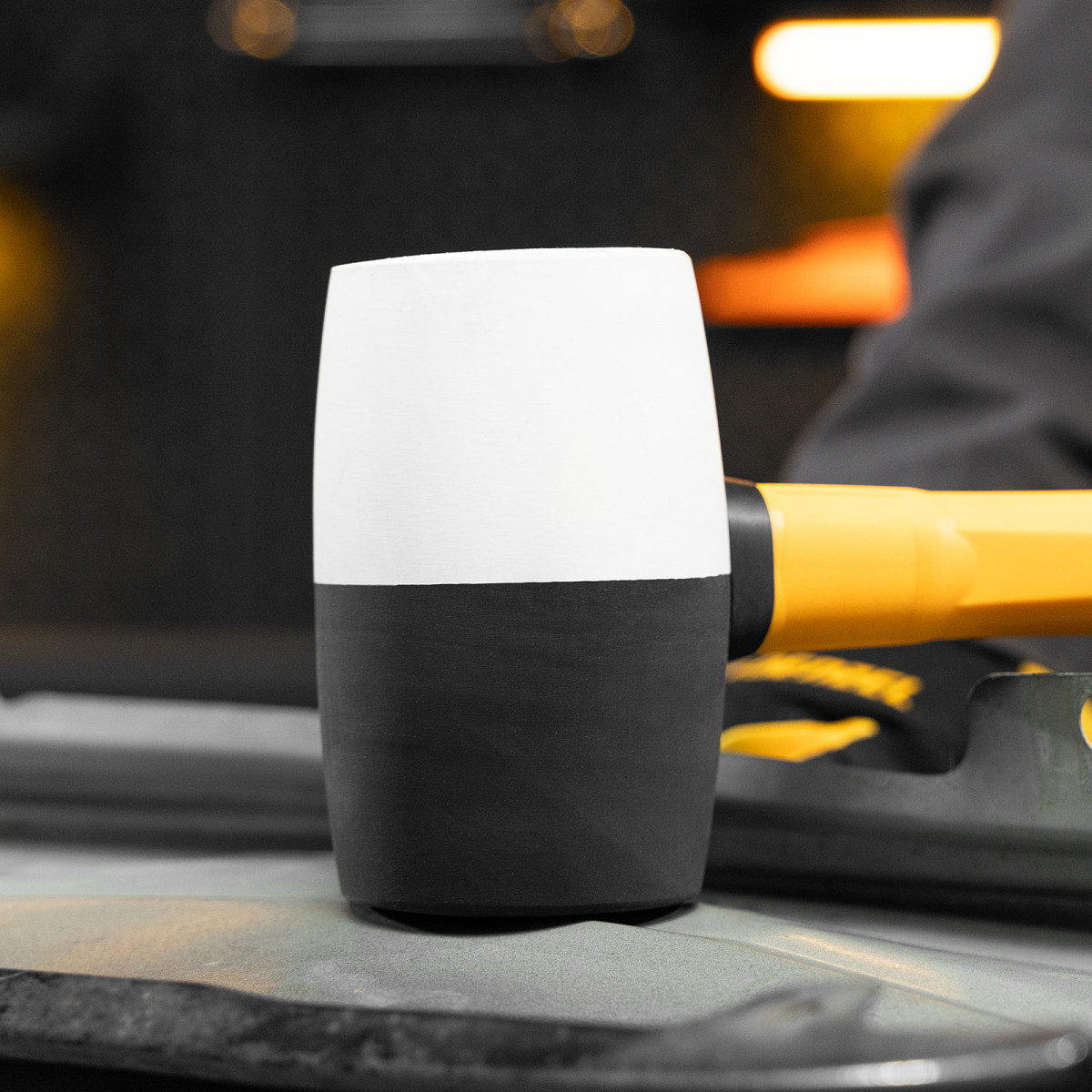 - Безопасная работа со светлыми материалами — часть бойка из белой резины не оставляет следов.