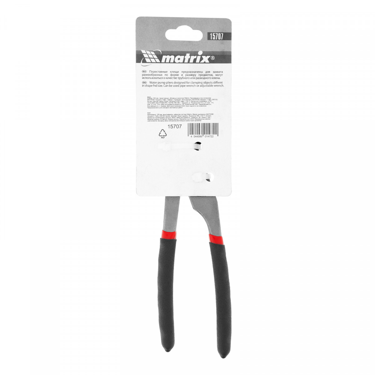 Клещи, 165 мм, переставные, обливные рукоятки Matrix