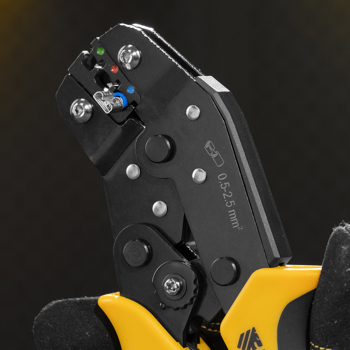 Трещоточный механизм обеспечивает полное обжимание.