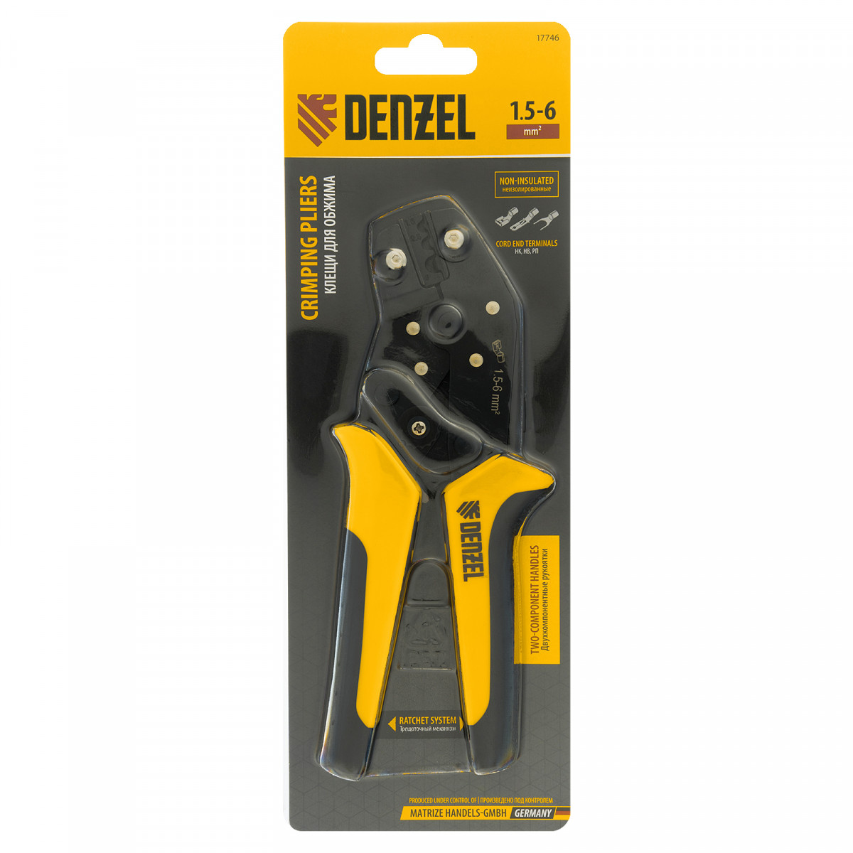 Клещи для обжима неизолированных наконечников НК и НВ, разъемов РП, 1,5 - 6 мм2 Denzel
