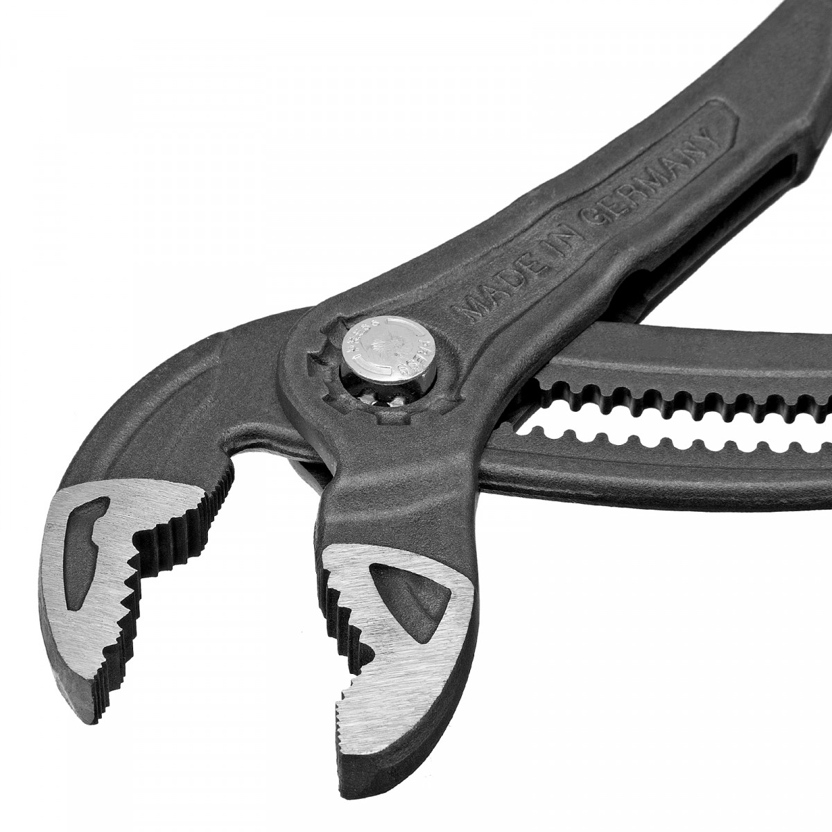 - Универсальность — разнонаправленные зубцы позволяют удерживать детали как с круглым, так и с квадратным профилем.