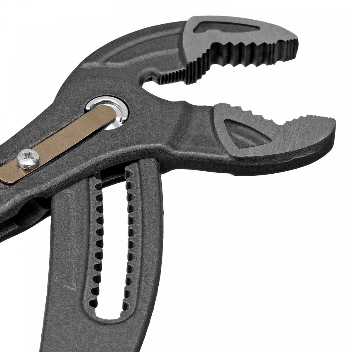 Кнопочный механизм позволяет быстро менять положение губок и фиксировать их в нужном положении.