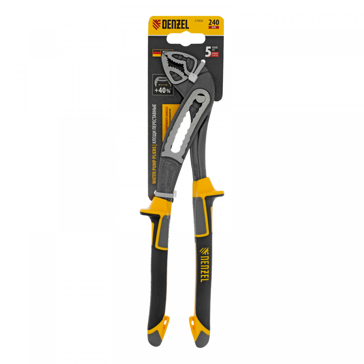 Клещи переставные, трехкомпонентные рукоятки 240 мм Denzel