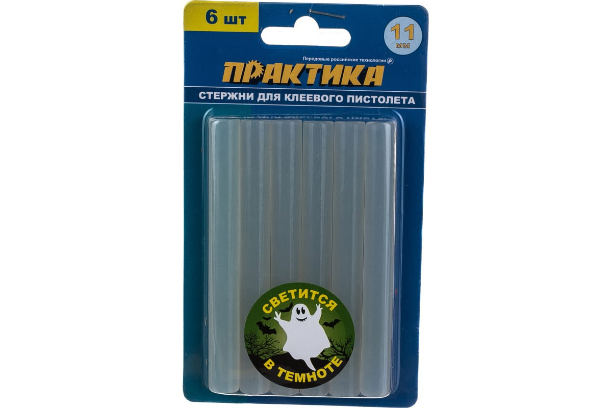 Клей для клеевого пистолета Практика белый, светящийся в темноте, 11*100 мм, 6шт/блистер
