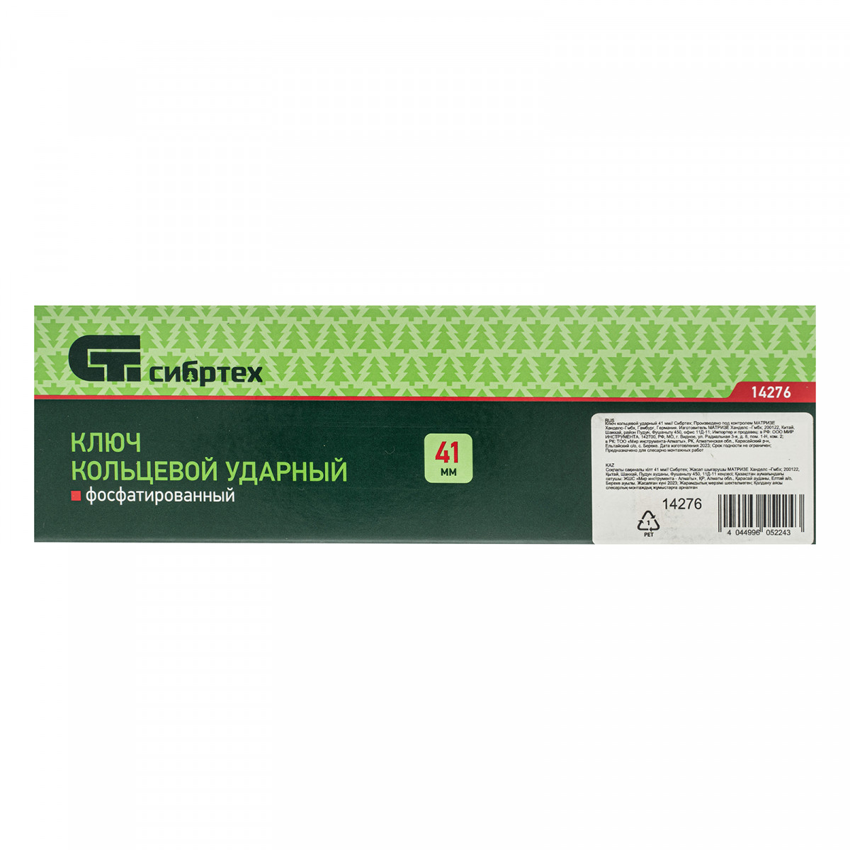Ключ кольцевой ударный Сибртех 14276 позволяет откручивать и закручивать резьбовые соединения размером 41 мм. Благодаря 12-гранному профилю надежно удерживает головку крепежа. Удобен для работы в ограниченном пространстве — для перестановки его достаточно повернуть на 30°. Инструмент применяется в слесарных мастерских, будет полезен во время ремонта, а также для решения бытовых задач.