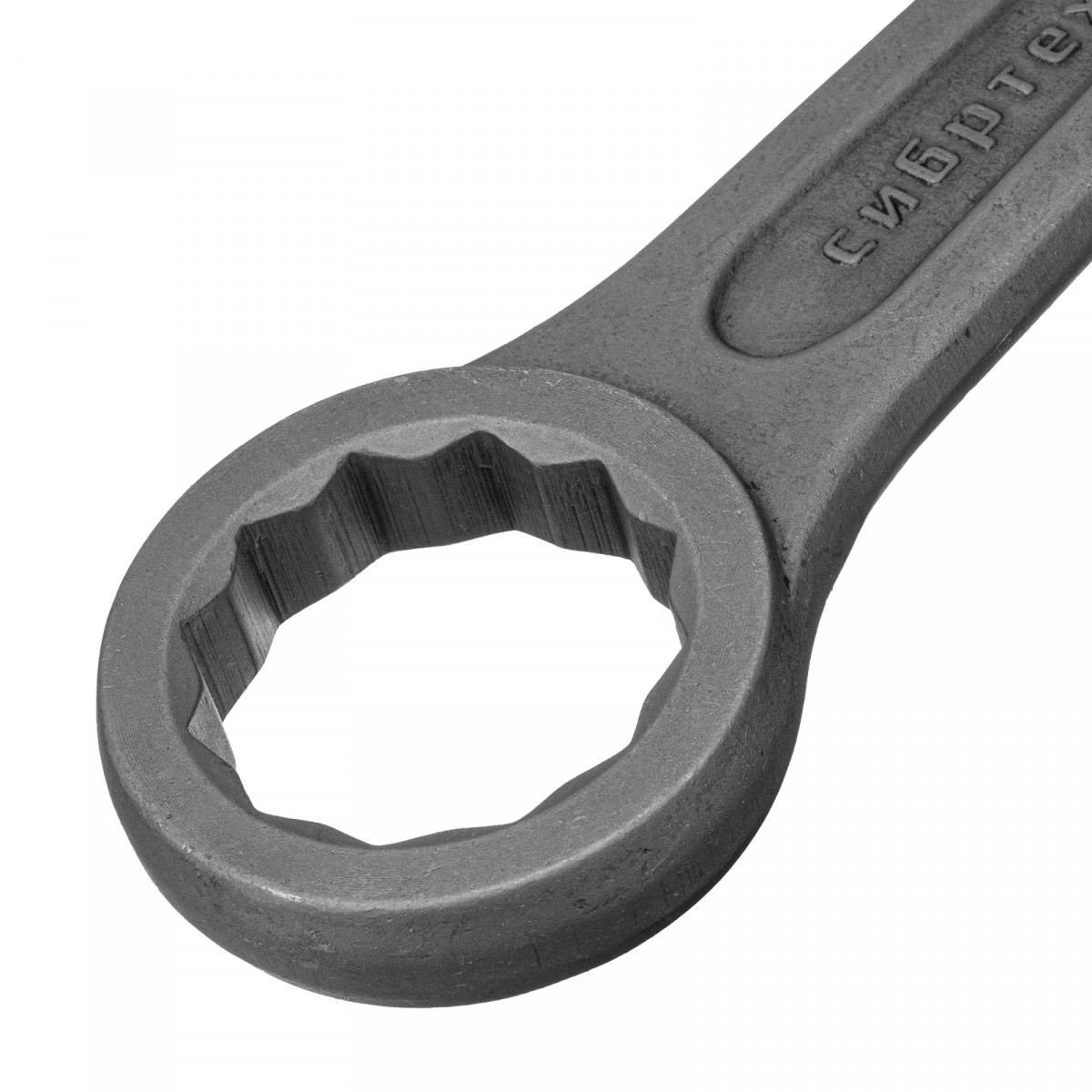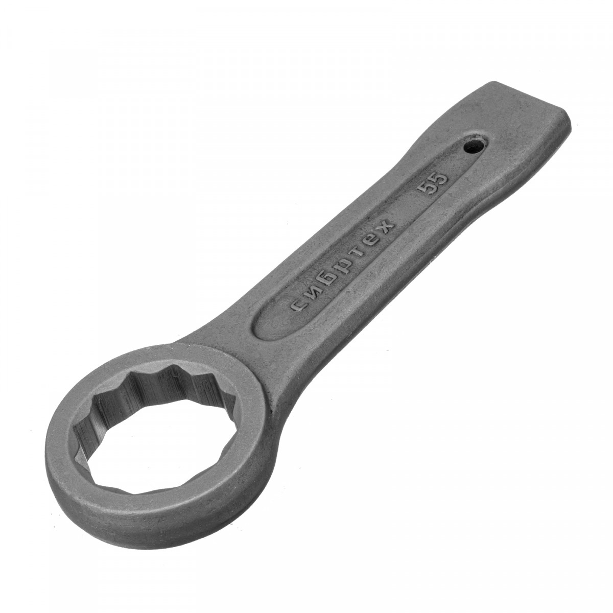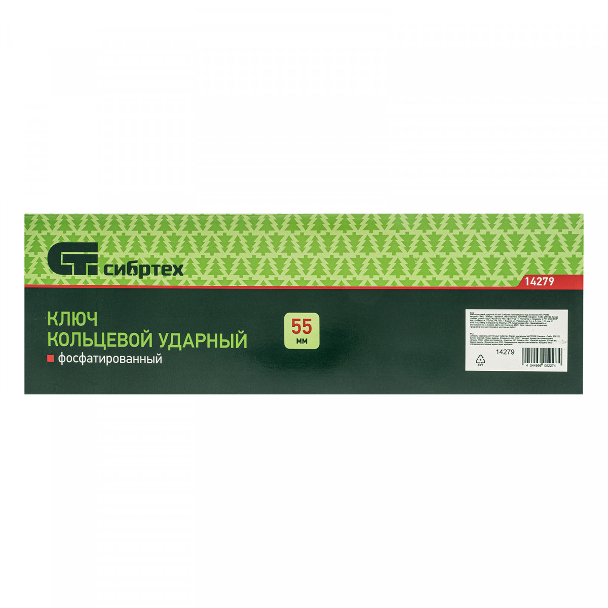 Ключ кольцевой ударный Сибртех 14279 позволяет откручивать и закручивать резьбовые соединения размером 55 мм. Благодаря 12-гранному профилю надежно удерживает головку крепежа. Удобен для работы в ограниченном пространстве — для перестановки его достаточно повернуть на 30°. Инструмент применяется в слесарных мастерских, будет полезен во время ремонта, а также для решения бытовых задач.
