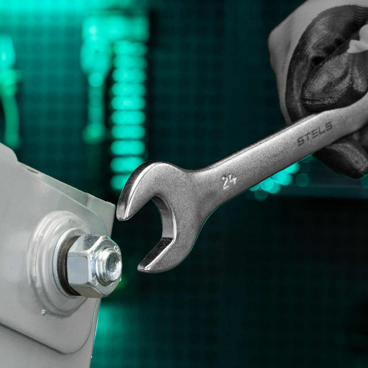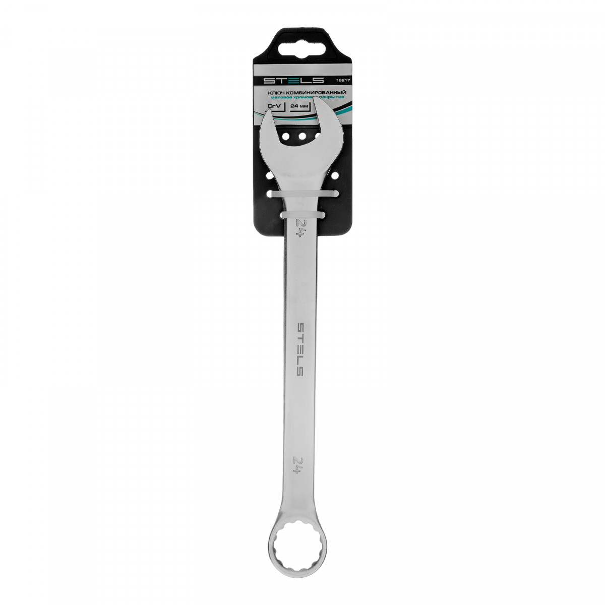 Ключ комбинированный, 24 мм, CrV, матовый хром Stels