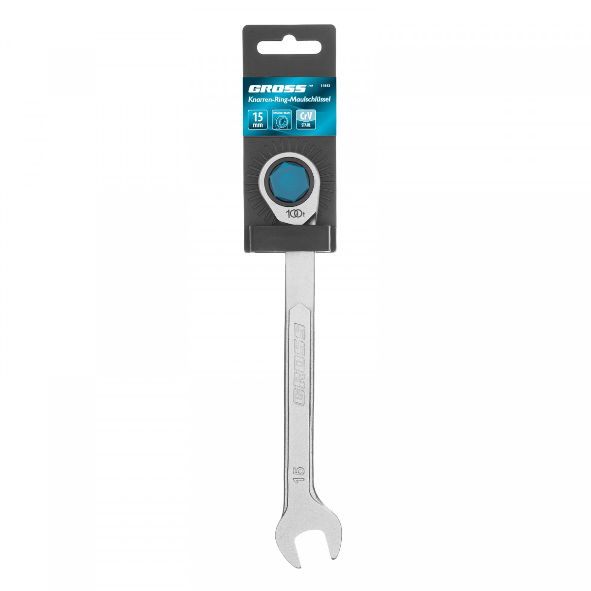 Ключ комбинированный трещоточный, 15 мм, количество зубьев 100 Gross
