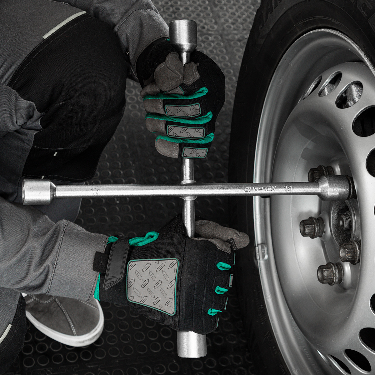 Баллонный ключ-крест Сибртех 14257 с толщиной прутьев 14 мм и размерами головок 17, 19, 21 и 22 мм используется для снятия и монтажа автомобильных колес. 4 несъемные шестигранные торцевые головки подходят для колесных гаек и болтов наиболее распространенных размеров. Инструмент будет полезен работникам станций шиномонтажа и автосервисов, а также пригодится автовладельцам.