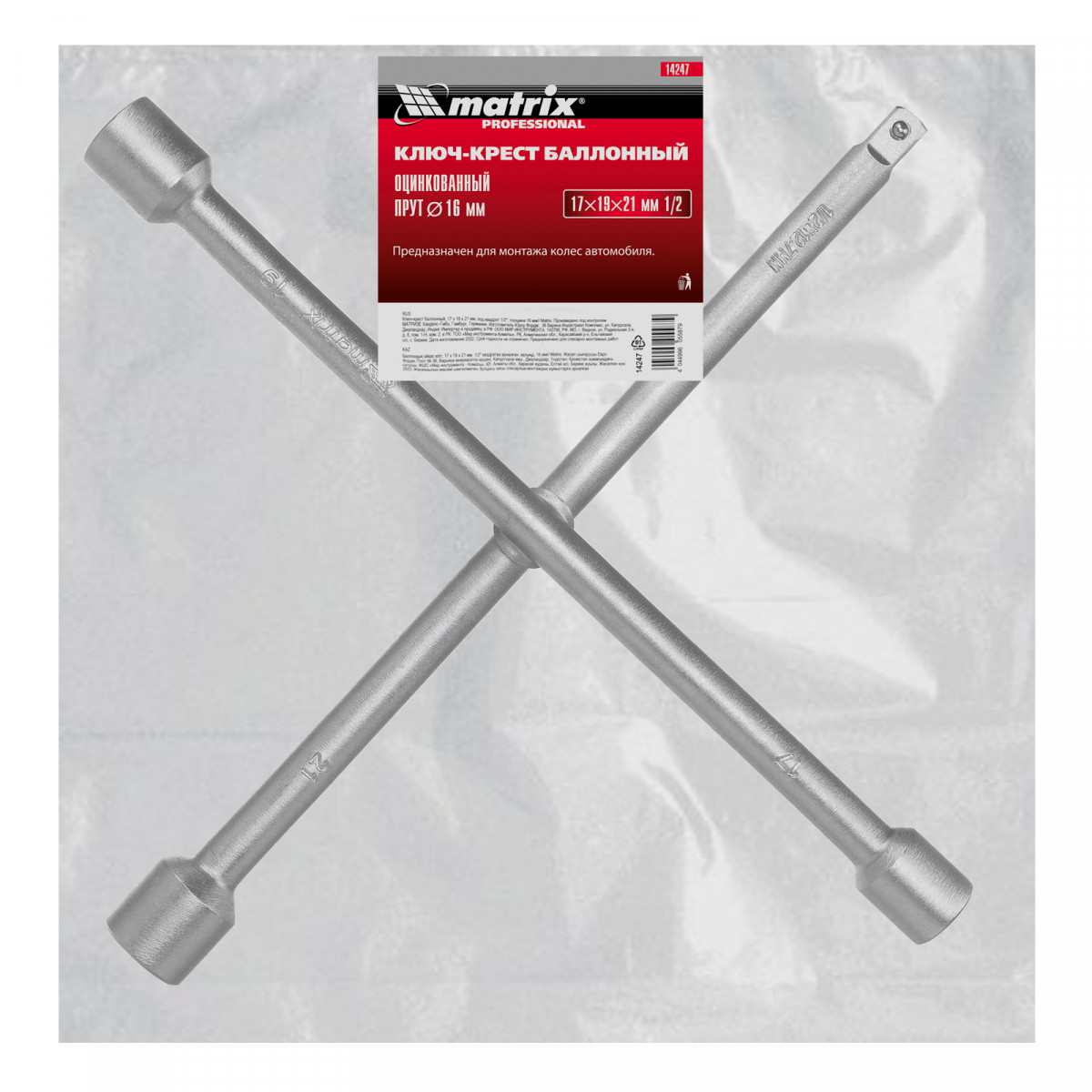 Ключ-крест баллонный, 17 х 19 х 21 мм, под квадрат 1/2, толщина 16 мм Matrix
