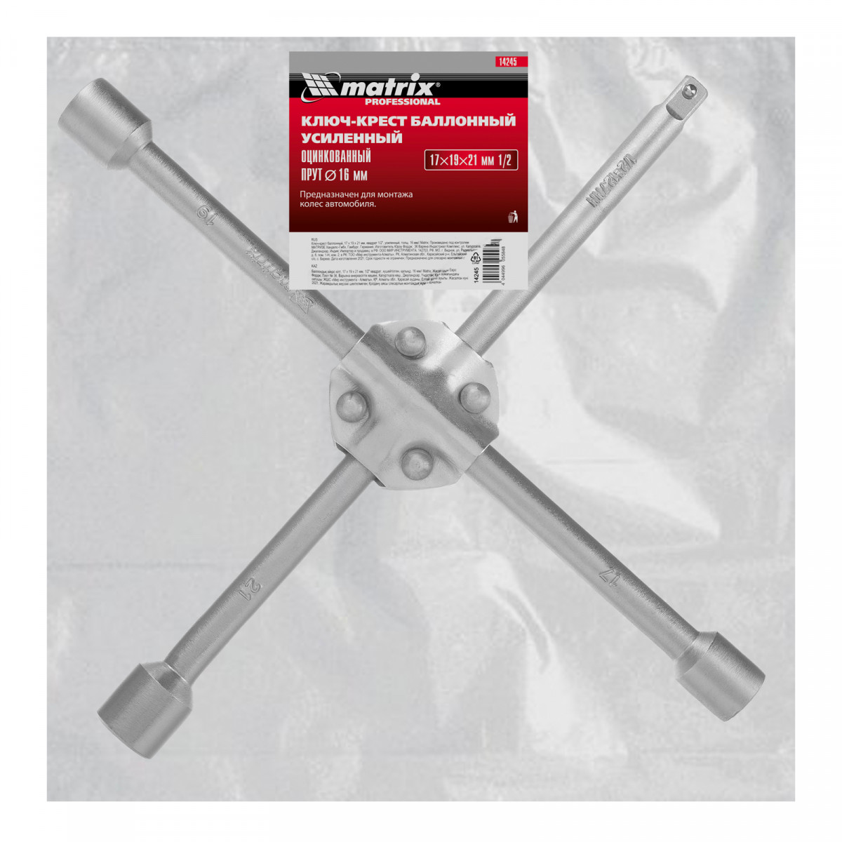 Ключ-крест баллонный, 17 х 19 х 21 мм, под квадрат 1/2, усиленный, толщина 16 мм Matrix Professional