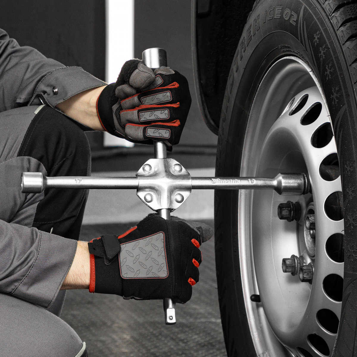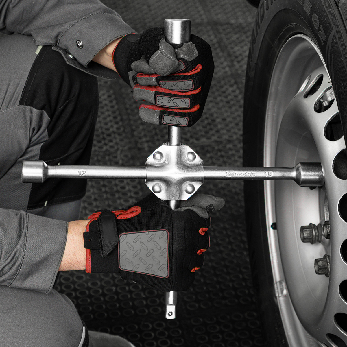 Ключ-крест баллонный усиленный Matrix 14245 размером 17 х 19 х 21 мм, с прутками толщиной 16 мм и присоединительным квадратом 1/2", применяется при установке и снятии автомобильных колес. Универсальный инструмент подходит для крепежа распространенных размеров 17, 19, 21 мм. Равномерно воздействует на крепежные изделия, не повреждая их. Используется на станциях техобслуживания и шиномонтажа, пригодится для самостоятельного ремонта машины или замены колеса в поездке.