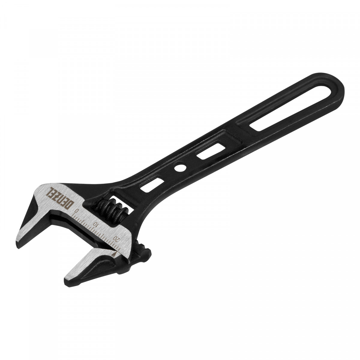 Усиленная кованая конструкция с дополнительными ребрами жесткости делает ключ Denzel износостойким и долговечным.
