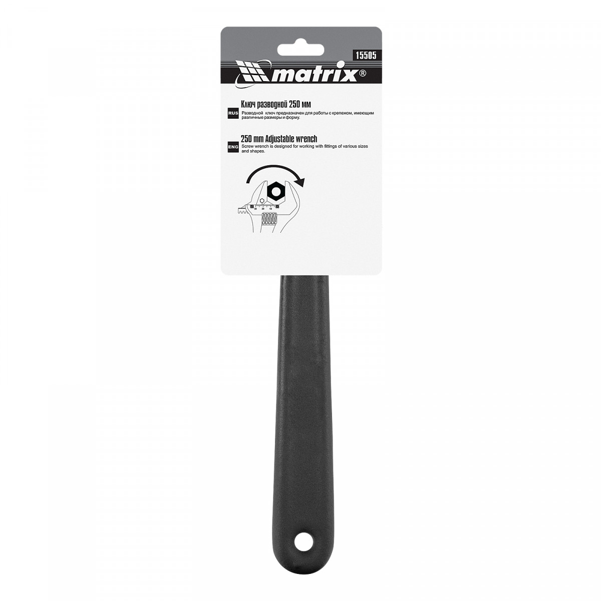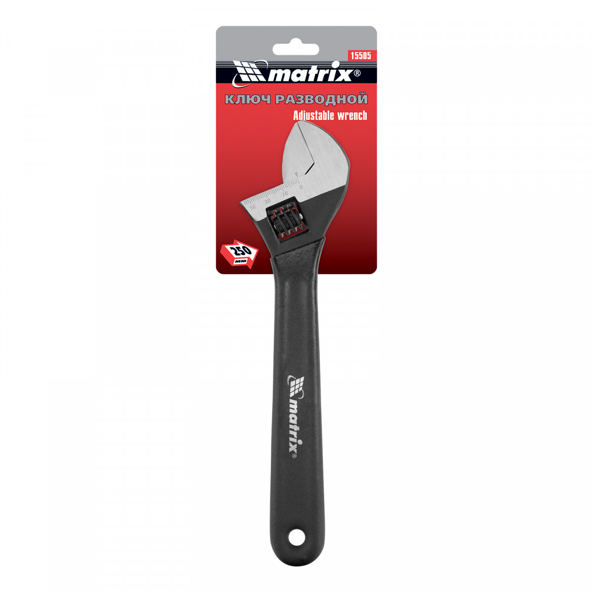 Разводной ключ Matrix 15505 длиной 250 мм используется для монтажа и демонтажа крепежных элементов. Заменяет собой целый комплект обычных гаечных ключей. Губки можно разводить на точно заданное расстояние, что позволяет захватывать детали различного размера. Разводной ключ пригодится для проведения слесарных, сантехнических, ремонтных работ.