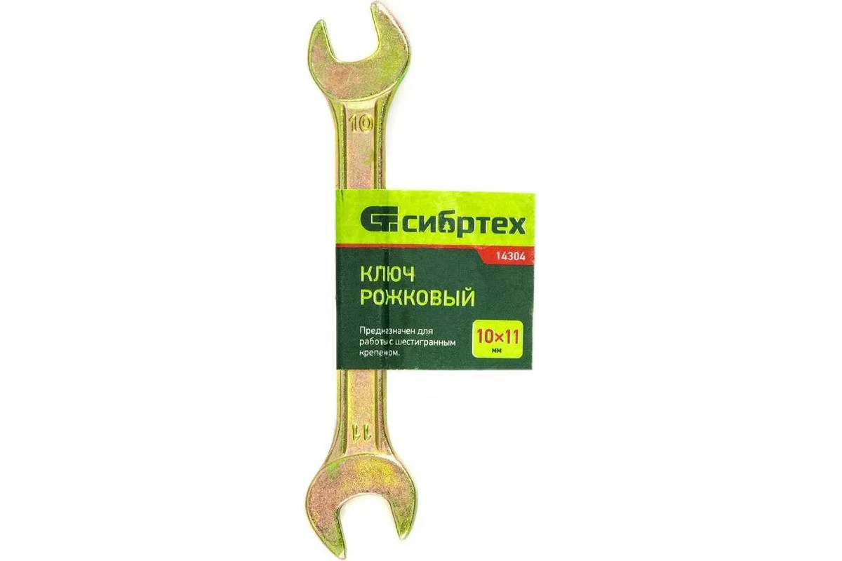 Ключ рожковый СИБРТЕХ 10*11 мм желтый цинк — надежный инструмент для работы с крепежными элементами различных размеров.