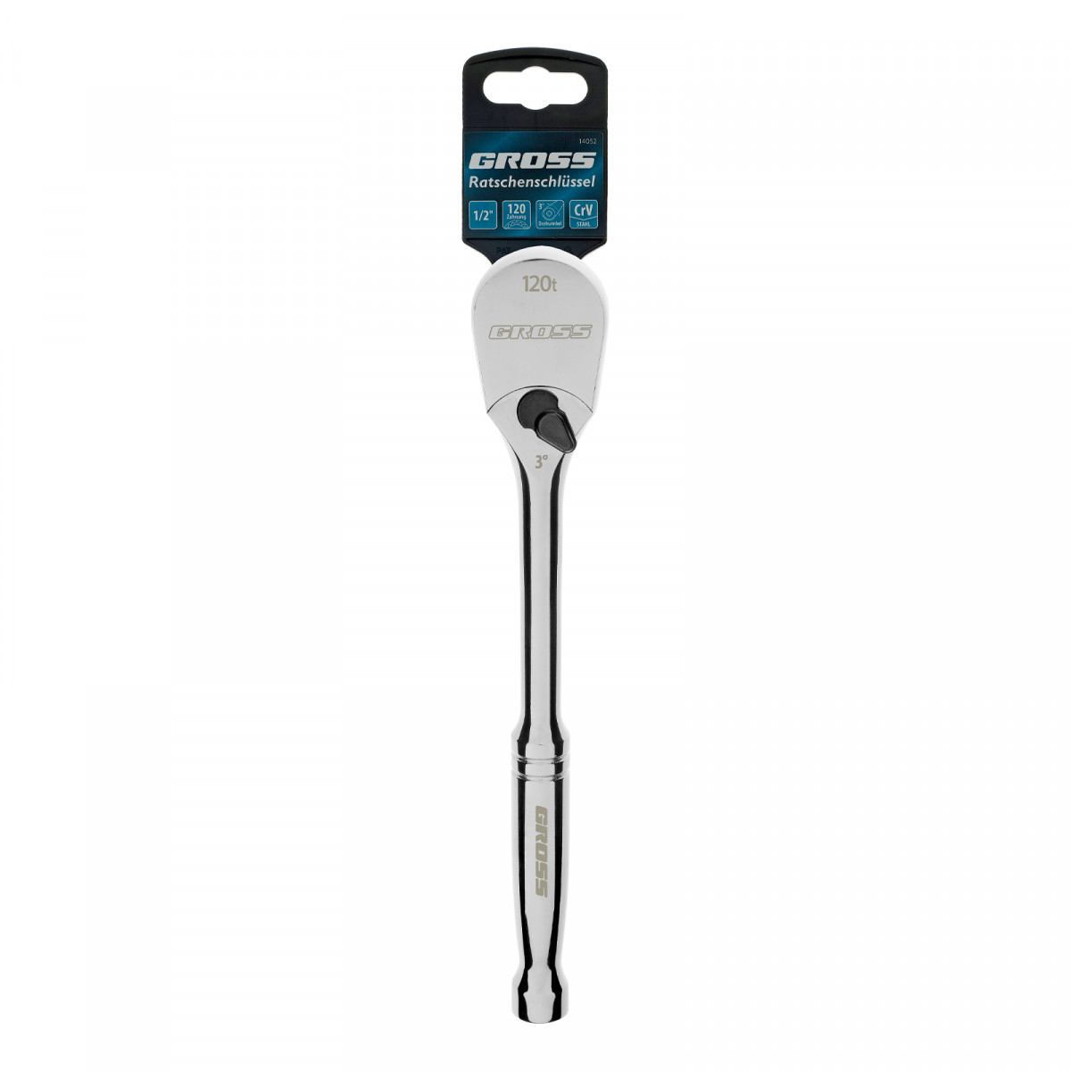 Ключ-трещотка 1/2", CrV, 120 зубьев, цельнометаллический, хром Gross