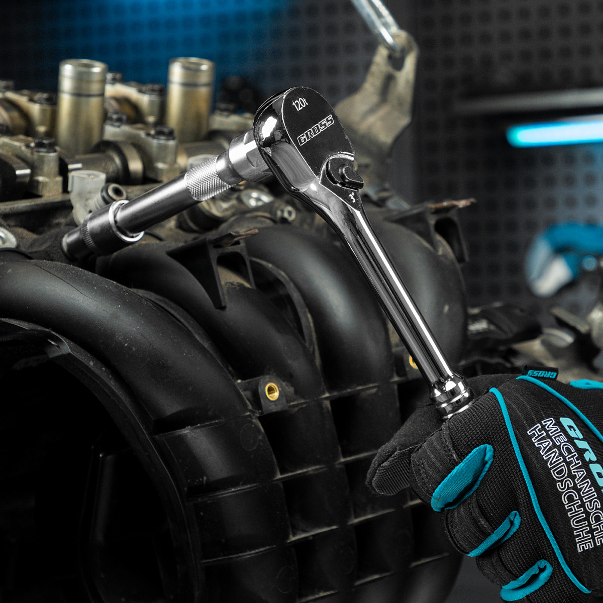 Храповый механизм с 120 зубьями обеспечивает минимальный угол поворота 3° для работы в труднодоступных местах.