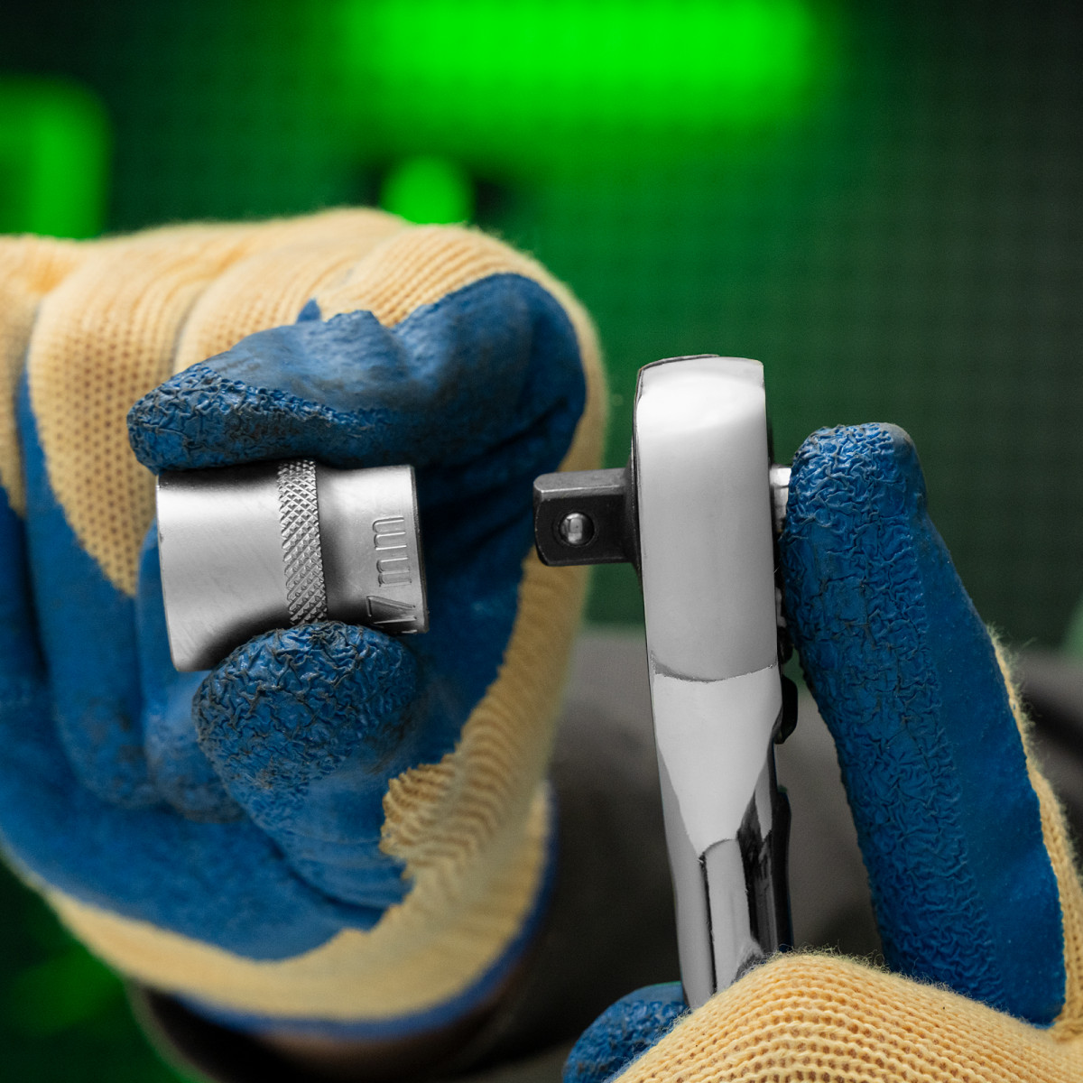 - Надежная фиксация — шариковый замок крепко удерживает торцевую головку, поэтому она не соскочит во время работы.