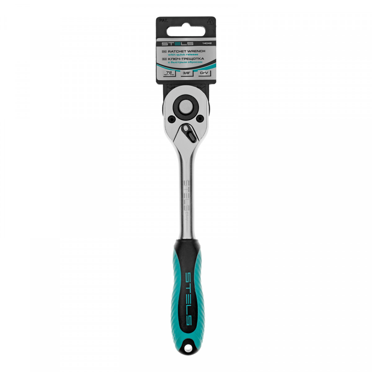 Ключ-трещотка 3/8", CrV, 72 зуба, с быстрым сбросом, матовый хром Stels