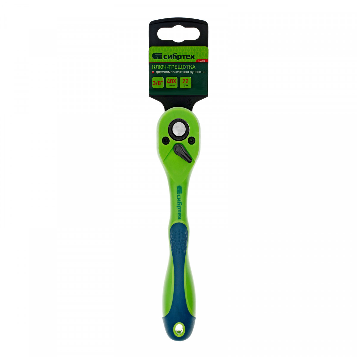 Ключ-трещотка Сибртех 14008 с двухкомпонентной рукояткой и присоединительным квадратом 3/8" используется с торцевыми головками, имеющими посадочное гнездо соответствующего размера. Предназначен для закручивания и раскручивания резьбовых соединений. Храповой механизм с 72 зубцами обеспечивает плавное вращение. Ключ применяется для ремонта автомобилей, техники и оборудования, а также пригодится дома или на даче.